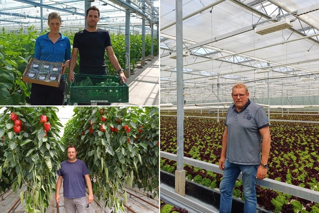 Papenburg producers. Clockwise: Jantje Schoenmaker and Sebastian Bürger (mini and snack cucumbers), Heinz-Jürgen Albers (hydroponic lettuce), and Björn Schubert (bell peppers).