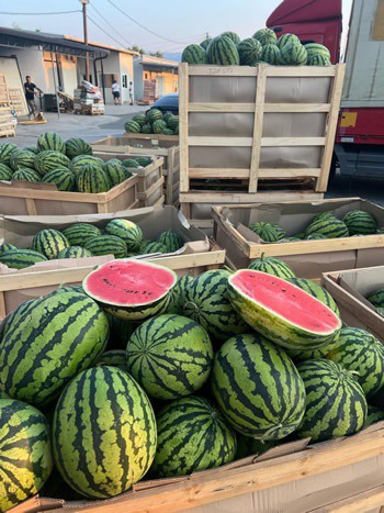 According to Furkan, the watermelons from Albania (Varela types) stand out for their sweet taste. "Today we also received a new variety that more closely resembles Spanish watermelons, with a light green skin and dark green stripes, but these are also wonderfully sweet in flavour."