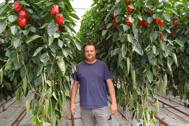 Schubert originally grew both tomatoes and bell peppers on two sites, each covering around two hectares. However, in 2021, the ToBRFV virus appeared on his tomato farm. "I felt that the risk of growing tomatoes was too great in the long term, which is why I also converted this site to bell peppers. We now produce bell peppers on around 4 hectares, which accounts for more than half of the horticultural center's total production (7 hectares). Red peppers continue to dominate cultivation (65 percent), followed by yellow (20 percent) and orange peppers (15 percent). We are observing that yellow is declining slightly, while orange peppers are gaining ground. However, we still do not see a market for green peppers in Germany."