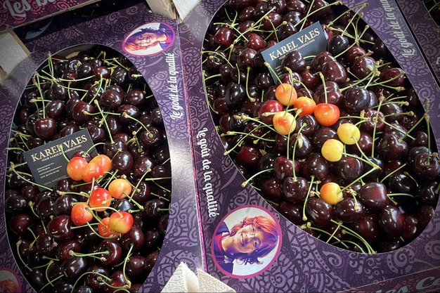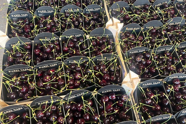 The cherry season at Hellingenfort is going extremely well, according to owner Karel Vaes. "It's a very nice season. The abundance of sunshine is making the cherries extra sweet, the yields are good, and the Haspengouw soil is resistant to heat and drought, so we expect a strong season," says the grower of the Hellingenfort farm. He adds that the warm temperatures are boosting consumption: "Cherries are a typical seasonal product, and during this kind of weather, they fly off the shelves."