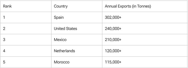 The Netherlands exports strawberries grown primarily through greenhouse methods, catering to neighboring European Union countries. Likewise, Morocco exports large quantities to Europe, particularly to France and Spain, leveraging its favorable climate and cost-effective labor.
