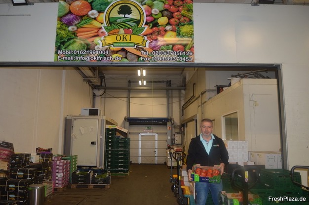 Stand operator Aydin Sen during FreshPlaza.de's visit to the wholesale market in week 28