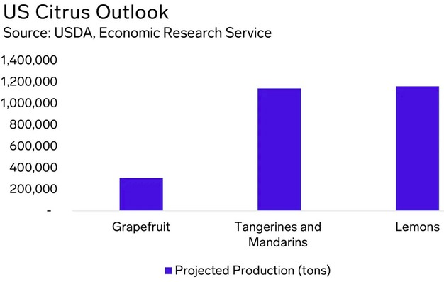 The U.S. citrus industry shows a mixed production outlook for the 2024–2025 season, according to the USDA, with notable strength in tangerines and lemons, while grapefruit continues its downward trend.