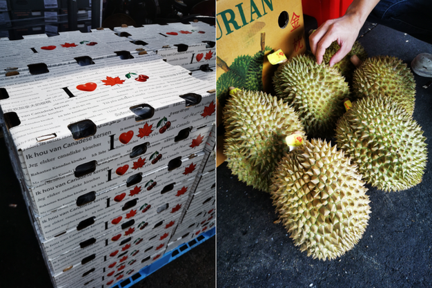 Left: Canadian cherries; Right: Thai durians