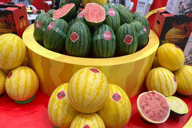 China had the largest presence at the event with a domestic produce industry that's developing in rapid pace. What also stood out from Chinese exhibitors are the new and visually appealing fruit varieties they offer in addition to traditional fruits. Some examples include yellow-skinned watermelons and strawberry apples. These fruits attracted lots of attention from overseas visitors.