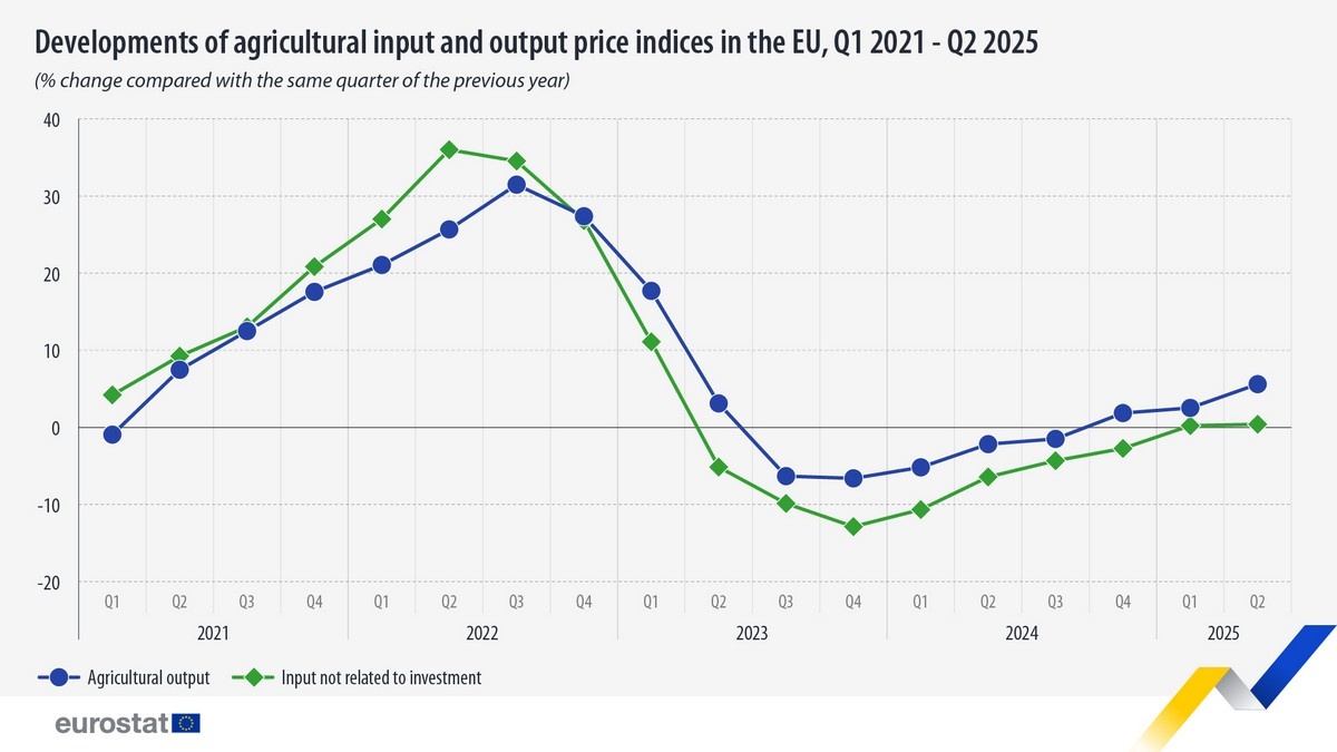 In the second quarter of 2025, the average price of agricultural output in the EU increased by 5.6% compared with the same period in 2024, confirming an upward trend after a period of decline.
