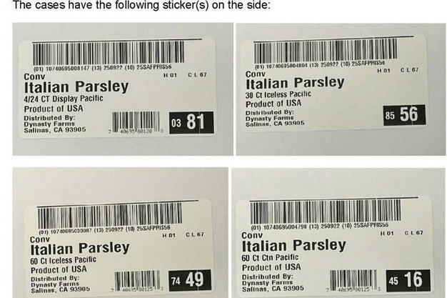 The recalled parsley was sold in bulk cases containing either 30 or 60 bunches with a twist tie, and in 24-count bags with twist ties intended for wholesale distribution. The UPC for the 30- and 60-count bunches is 40695 80125, while the UPC for the 24-count bags is 40695 80120. The shelf life of the product was 18 days from harvest, which would have expired around October 10, 2025.