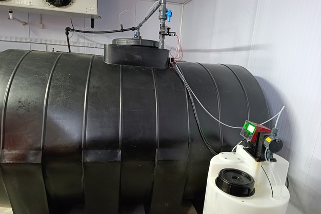 A Clean-In-Place (CIP) disinfection cycle was performed using a 1% Huwa-San TR-50 solution for 30 minutes to effectively remove biofilm deposits and disinfect the entire water distribution system. A dosing pump continuously added 20 ppm of Huwa-San TR-50 into the main water tank to maintain system hygiene and prevent biofilm reformation. A second dosing pump added an additional 60 ppm directly into the pipeline before the water entered the post-harvest washing unit, ensuring a minimum concentration of 70 ppm in the washing water used for fresh produce.