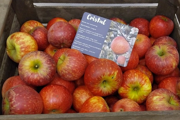 The program included an orchard visit featuring Cristal, a new apple variety developed by IFO. Attendees observed the trial trees and tasted fruit produced under both integrated and organic systems. According to the technical description presented at the event, Cristal produces attractively striped fruit of good size, with a light and juicy texture and around 14° Brix. The variety shows tolerance to scab and powdery mildew, flowers roughly one week after Golden or Elstar, and has a harvest window similar to Jonagold.