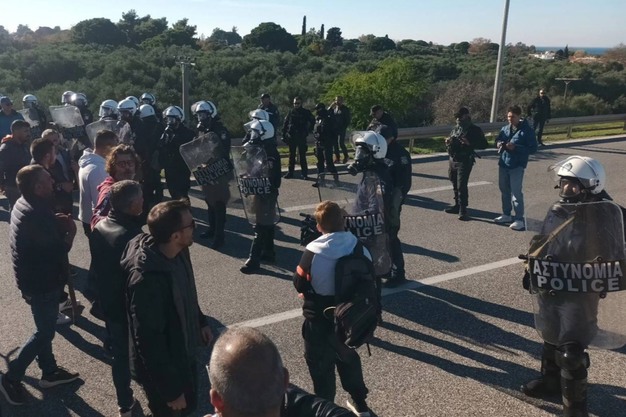 Special police units blocked the nationally important Rio–Antirrio Bridge on Wednesday, December 10, to stop farmers from letting vehicles pass freely through the tolls. They even blocked ambulances, while farmers distributed citrus fruit to drivers. (photo credits: 902.gr)