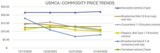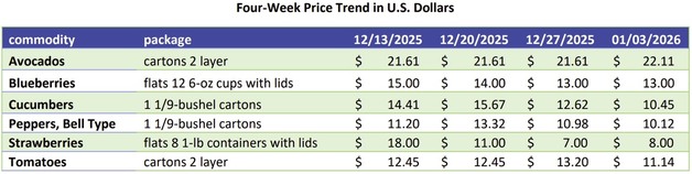 The U.S. fresh produce market is showing mixed trends across key commodities, with shifting import volumes, seasonal transitions in domestic production, and varied pricing movements. Avocados, berries, vegetables, and tomatoes reflect differing supply dynamics as trading activity ranges from slow to active, depending on origin and product.