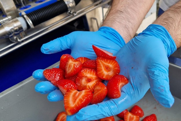 "These machines are made of food-grade stainless steel and feature a rotating 'merry-go-round' conveyor belt that allows operators to load products at any time. They also have an output conveyor belt for drying, freezing, or fresh cutting. The machines can handle strawberries of different diameters simply by replacing the supporting membrane and making minor adjustments to the settings. Processing takes place in three phases: alignment, hulling, and ejection of the fruit. This process can be combined with the cutting phase if the customer requests it. "The product can be processed dry, without the use of water, with minimal waste of around 10 percent," adds Sicignano.