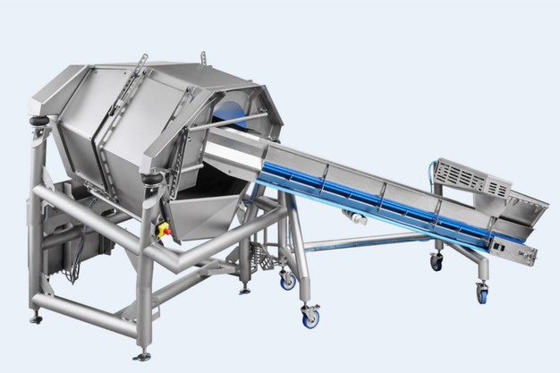 According to Kronen, the system's drum surface area and centrifugal force allow reduced spin-drying times compared with smaller units. Depending on product type and settings, residual moisture levels of around 2–4 per cent can be achieved. Dried product is discharged into standard 200-liter containers or onto an optional belt for direct transfer to weighing and packaging systems.
