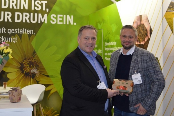 Thomas Strieder (left) and Marcel Petrick presented cup plant packaging for fruit and vegetables at Biofach 2025.