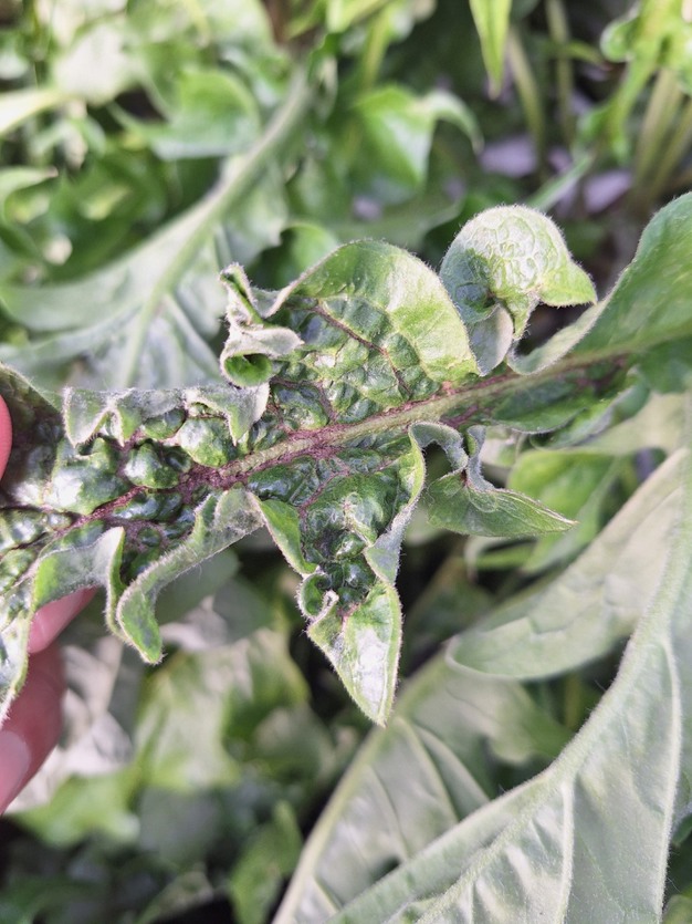 The thrips damage the young pepper leaves and flowers directly. The trophic activity causes the leaves to take on a yellowish to reddish-brown colouring. Attacked leaves in the development phase become deformed, curled, and spotted, while older leaves take on a silvery appearance. The affected fruits are malformed and have a rough, suberised surface.