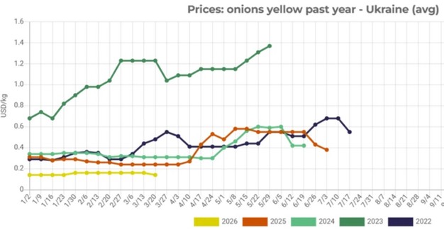 Compared to the same period last year, onion prices in Ukraine are currently around 49 per cent lower.