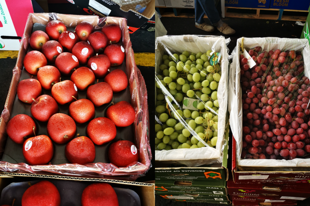 Left: South African Flash Gala apples; Right: Australian grapes (premium batch)