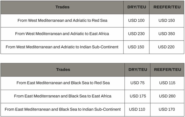Emergency fuel surcharge extended on Mediterranean and Black Sea routes