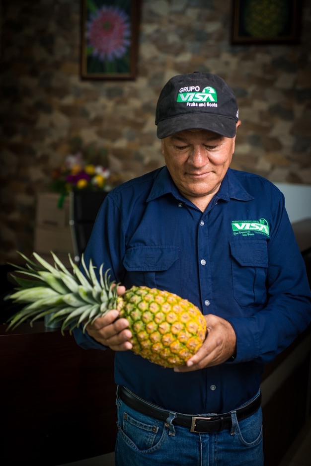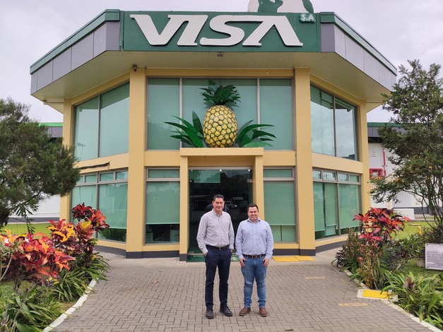 Grupo VISA today farms 3,600 hectares of pineapple and sells exclusively fruit of its own production across fresh, frozen, and dehydrated channels. "We don't buy pineapple from third parties," explains Commercial Manager Max Paniagua Chacón. "That gives us full control over quality, traceability, and planning."