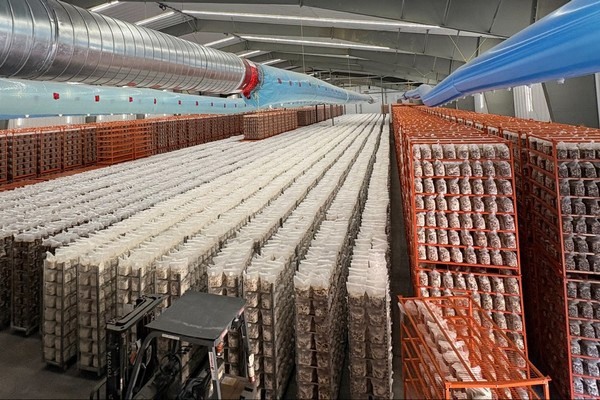 In exotic mushrooms however, it gets tricky. "For us, we take byproducts from other ag industries, such as ground flax, wheat bran and more, we pasteurize it and then inoculate it with some seeds–the mushroom mycelium," says Rotiroti, noting its farm produces about 150 tons of compost weekly. That compost then sits for about 14 weeks to let the mycelium grow, and after that time, it's taken into a fruiting room. Over the course of seven days, mushrooms are grown.