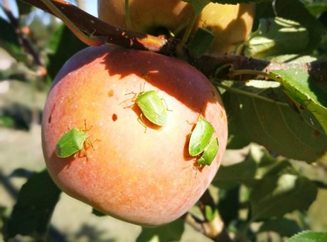 "Domestic shield bugs also cause damage, I've seen it on apples as a red dot forms where they sting. Problems could become much more serious if there are lots of insects in the area."