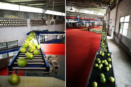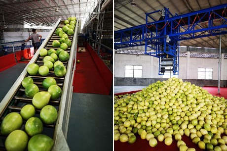 "We have around 53 hectares of honey pomelo plantations in Pinghe. Our processing factory takes up around 4000 square meters. We control every segment of the operation from plantation through processing all the way to export trade. The export season recently concluded with our last shipment of honey pomelo on January 8th. As for our production conditions, the overall production volume is slightly bigger than last year. Chinese export is flourishing, but since European consumers prefer the smaller honey pomelo, and Chinese honey pomelo turned out relatively large this year, the overall volume of honey pomelo exported to Europe was much smaller this year. Some companies exported large honey pomelo to the Russian market, but their demand was limited too. In the end the overall export volume was much smaller than last year. We still managed to grow our export to Europe, despite the overall trend. We pay attention to the European market and our brand name 'Guanwei' has some recognition, which is why we were able to guarantee honey pomelo exports to Europe."