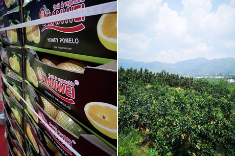 Packaged honey pomelo and the Xiamen Guanwei honey pomelo plantation