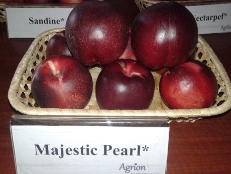 When it comes to white nectarines, Majestic Pearl produces appealing good-sized fruit with a round regular shape, some russeting, a sweet aromatic flavor with low acidity (10.3°Brix - 5.1 meq/100ml) and good texture.