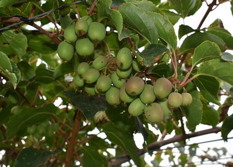 Fresh kiwi berries of the Ananasnaya variety, just before the harvest.
