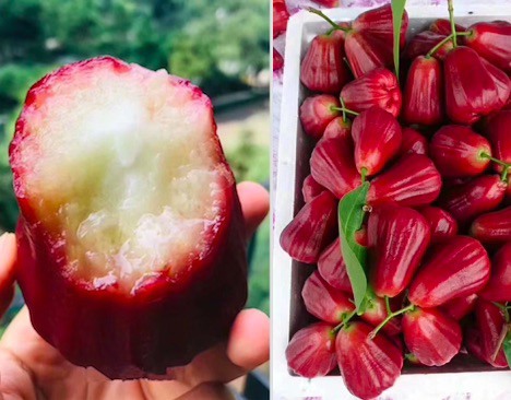 Black Iron wax apples originate in Pingtung County in Taiwan. This is a wax apple variety that is based on the Black Pearl wax apple, which was cultivated and improved to create the Black Iron wax apple. The new variety was introduced to Hainan around the year 2000, which means the Black Iron wax apple now has nearly 20 years of plantation history in Hainan.
