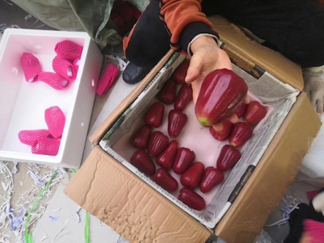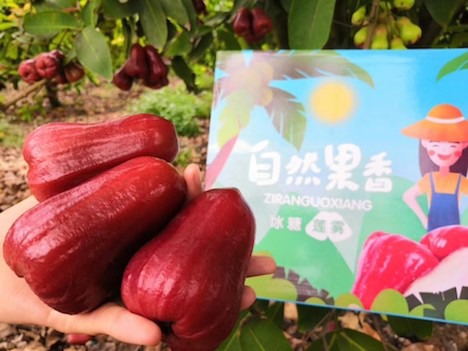"At the moment, we are selling our wax apples through WeChat traders, market stalls, and e-commerce platforms. We sell our wax apples throughout the country. The wax apples we sell come in a great variety, but only the Black Iron wax apple is suitable for e-commerce and high-end market sales. The retail conditions for the Black Iron wax apple variety are different because this product variety tastes better than other wax apples. Only the Black Iron wax apple can meet the high standard of high-end markets. We currently offer the wax apples in gift boxes of 1.5 kg and 2.5 kg, because Chinese Spring Festival [25 January, 2020] is coming soon. In the coming years we will focus our attention on the Black Iron wax apple. We will establish a set of high standards and create our own brand."