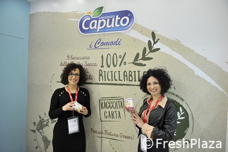 At Marca in Bologna, "Vincenzo Caputo" showcased its new fully recyclable dried and mixed fruit packaging solutions. "This range is called 'I Comodi' (i.e. convenient) because it is easy to use and carry around but, most of all, because the packaging is 100% recyclable as paper waste. Even the transparent window is made up of a composite material that ca be recycled," explained marketing manager Pina Santucci and Annapaola Celentano from the sales department.