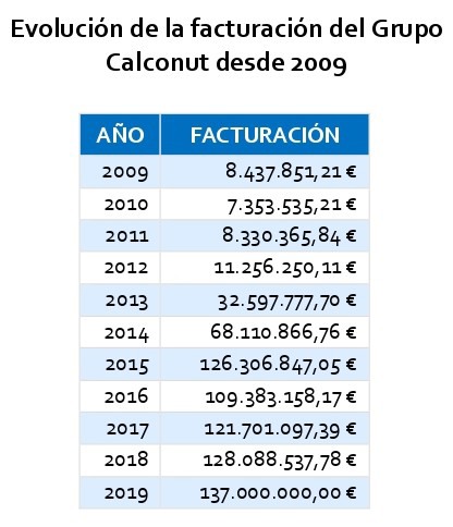 Calconut, the leading Spanish company in the international nut sector, expects to have closed 2019 with a 7% growth in its turnover compared to the previous year. This means reaching an income of 137 million Euro, when just 10 years earlier its turnover stood at 8.5 million. The company has thus managed to maintain a continuous growth rate for several years. These positive data are in line with those of the nut sector, which will close the year with slightly over 9% growth, according to the latest forecasts.