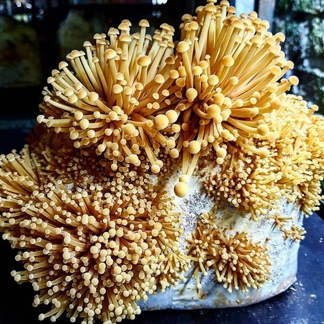 Enoki or "Golden Needle Mushroom" about 2 days before harvesting