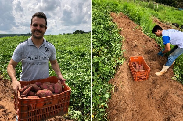 The branches of the potato plant are planted in the ground during spring and around a 100 days later the potatoes can be harvested. The best temperature for the potato to grow in is 24 degrees Celsius and since it’s like this almost always in some parts of Brazil the sweet potato is able to grow all year long. When the potatoes are being harvested a machine goes through the dirt to push the potatoes with the loose dirt upwards.