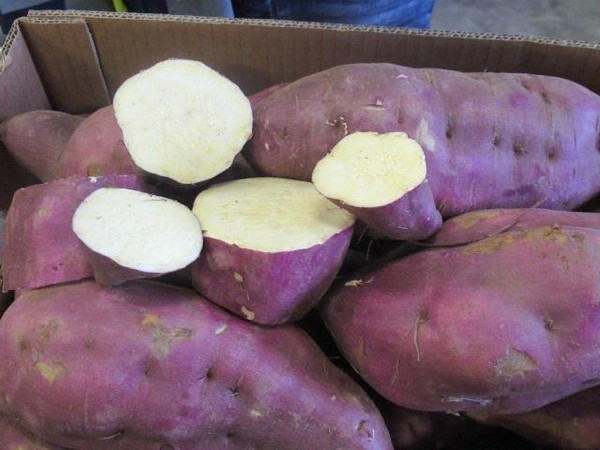 The sweet potato has many different varieties. The most familiar variety is the one where the meat is orange. The less familiar variety is the sweet potato that has white flesh inside and a purple skin on the outside. This potato is healthier than the usual starchy potato that is grown and sold in The Netherlands. The white flesh sweet potato is full of nutrients, fibers and has a low amount of carbon hydrates. The potato also contains a lot of water which makes it into a Superfood for people who are on a diet or just want to eat good but healthy food. It also contains lots of Vitamine A.