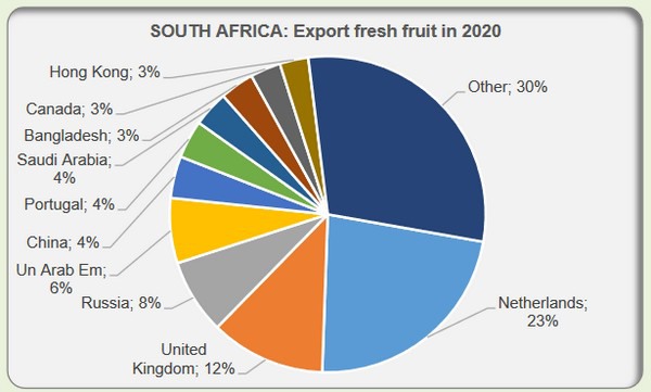 There was a striking increase in South African exports to Russia. This year, South Africa exported more than 275,000 tons of fruit to that country. That's 40% up, a quarter more than in the previous two years. The United Arab Emirates is the fourth-largest buyer of South African fruit. Exports to that country this year were much (20%) more than in 2019. To the other important customer in the Gulf states, Saudi Arabia is another important South African client. However, 2020's exports to that Gulf State were well below last year's levels.