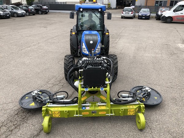 The width of the main row cutter can be varied according to company needs. There can be even two discs to perform row and under-the-canopy cuts in a single operation, if the layout allows it. The disc moves very quickly and the rubber coating prevents damage to the trunk. The machine can also be mounted to the tractor front lifter.