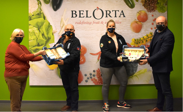 BelOrta kicked off the asparagus season today with the sale of the first Belgian asparagus. Groothandel Sebrechts from Antwerp was the first to print and received the first crates. This year too, the first sales are linked to a good cause. Sebrechts bought the first asparagus at €240 per tray and BelOrta is increasing the amount so that five charities can each receive €1,200.