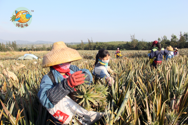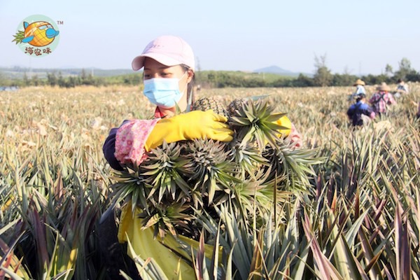 "We sell pineapples under our own brand 'Hainan Farm Flavor'. We sell both through traditional retail channels and e-commerce platforms. Our fragrant pineapples are mostly sold in the wholesale markets and supermarkets of Jiangsu, Zhejiang, and Shanghai. As for the size of the pineapples, there seems to be an equal amount of large and small pineapples this year," said Mr. Wang Zhiqiang.