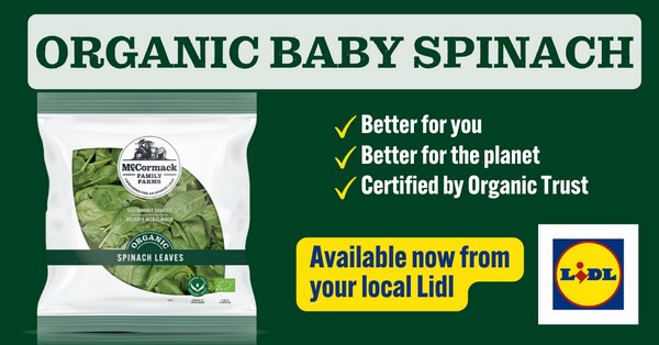 Irish salad and herb grower, McCormack Family Farms, launched a new brand for their range of unwashed salad leaves and herbs last year and this week they have announced the launch of branded organic baby spinach into Lidl Ireland.