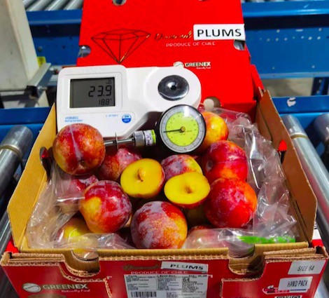 And finally Mike introduced the Cherry plums: "Cherry plums are relatively small. The fruit peel is red and naturally speckled. The fruit peel is somewhat sour, but the fruit flesh is sweet. Cherry plums are considered high-end market products in Chile. There are only three Chilean export companies authorized to supply the Chinese market with Cherry plums. However, growers find it challenging to select the optimum harvest time that guarantees peak firmness and sweetness."