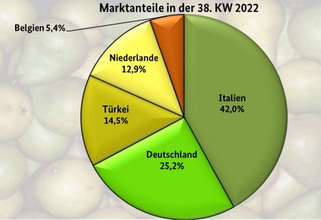 Italian pears of the Santa Maria, Abate Fetel and Williams Christ varieties predominated. According to BLE, the range was supplemented by popular Turkish Santa Maria, and by now increasing domestic products, such as Conference, Williams Christ and Alexander Lucas. In Frankfurt, domestic Vereinsdechant and Xenia rounded out the assortment. Hamburg reported an increasingly high proportion of smaller calibers, which were not too popular with the consumers.