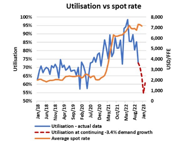 This is at odds with demand growth (or lack thereof ), as demand was down -3.4% Y/Y in Aug-Oct 2022, certainly not warranting the level of capacity injection currently planned.