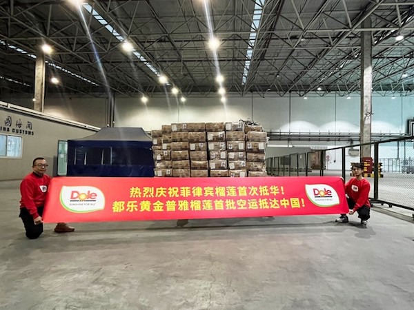 On Jan.7, 2023, China Customs officially announced the import access of Philippine Durians into China, and on April 7th, 2023, at 14:30, the first batch of Dole Golden Puyat durians arrived on the Shanghai Huizhan market. This symbolizes the official start of exports of Philippine durian to China. Dole is one of the first companies to introduce Philippine durian into China.