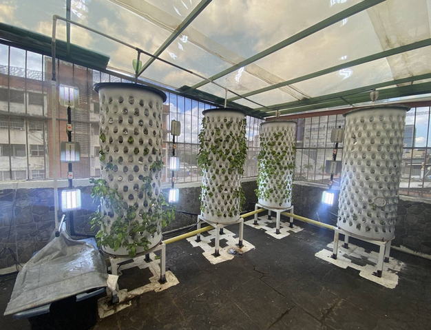 G.T. Santa Hidroponic established a hydroponic farm in Caracas, Venezuela, in January 2021 with the vision of transforming urban agriculture and contributing to sustainable food systems. The farm is located on the roof of an apartment complex in the center of the city and spans 30 square meters. The farm is small but mighty, having been designed with precision and incorporating aeroponic towers and climate control to create a productive, vertical oasis in the heart of Caracas.