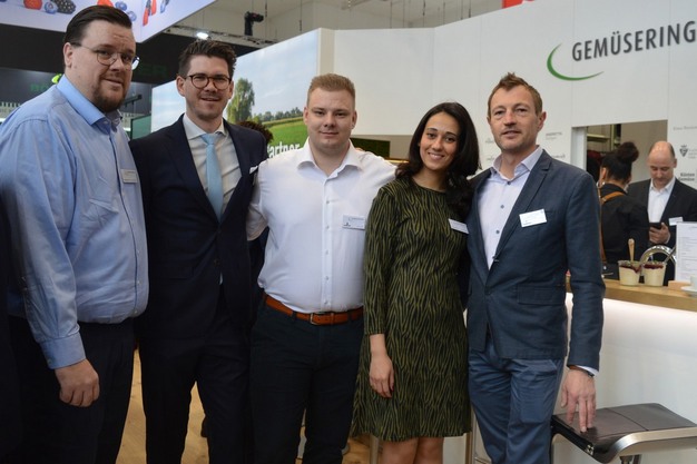 Christiaan Koellreuter (l) with some colleagues from the cooperation partner Widmann at this year's Fruit Logistica.