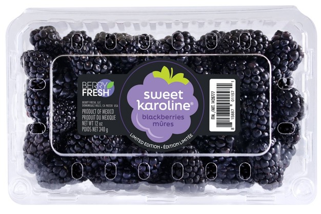 Following Berry Fresh's success with high-flavor blueberry varieties, the varietal development of blackberries is now also showing significant growth. Through constant trialing and investing in new high-flavor varieties, their genetics portfolio is being pushed into a more flavorful future. "This is very positive, the blackberry category needs consistently delicious varieties to help increase consumption," says Laudan Chaffin with Berry Fresh. "Right now, the blackberry has the lowest household penetration of all four berries." About four years ago, Berry Fresh launched Sweet Karoline®.