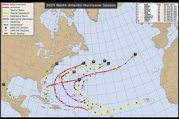 "Typically, there would be nine named storms by September 16," says Drew Lerner with World Weather, Inc. "We are running a little late as it took until October 1 to register nine named storms this year. With the recent evolution of Tropical Storm Jerry, relative to the October 11 norm we are about two storms fewer than the normal." The two major hurricanes seen this year are close to the norm as well." However, the norm is based on a 30-year average while in recent years, the number of active storms has increased. With the old norm being 10-12 storms in the summer season, the number has stretched to 14 in recent years. For that reason, the number seems to be much lower this year compared to the last few years.