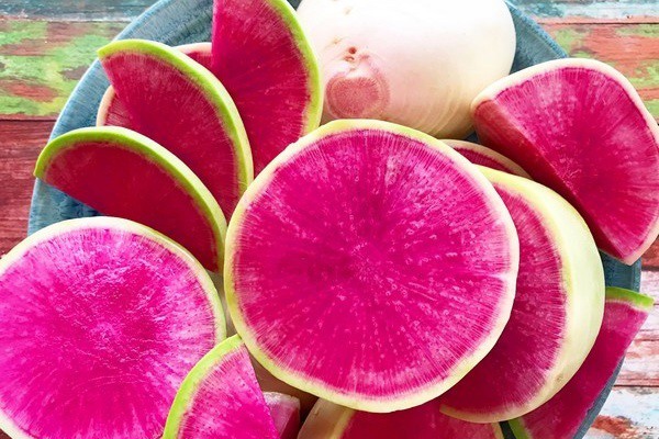 The Watermelon Radish is a visually striking root vegetable, pale green to cream on the outside and bright pink to magenta on the inside with a crisp texture and mild-peppery flavour. It is gaining momentum among chefs, retailers, salad processors, and consumers globally.